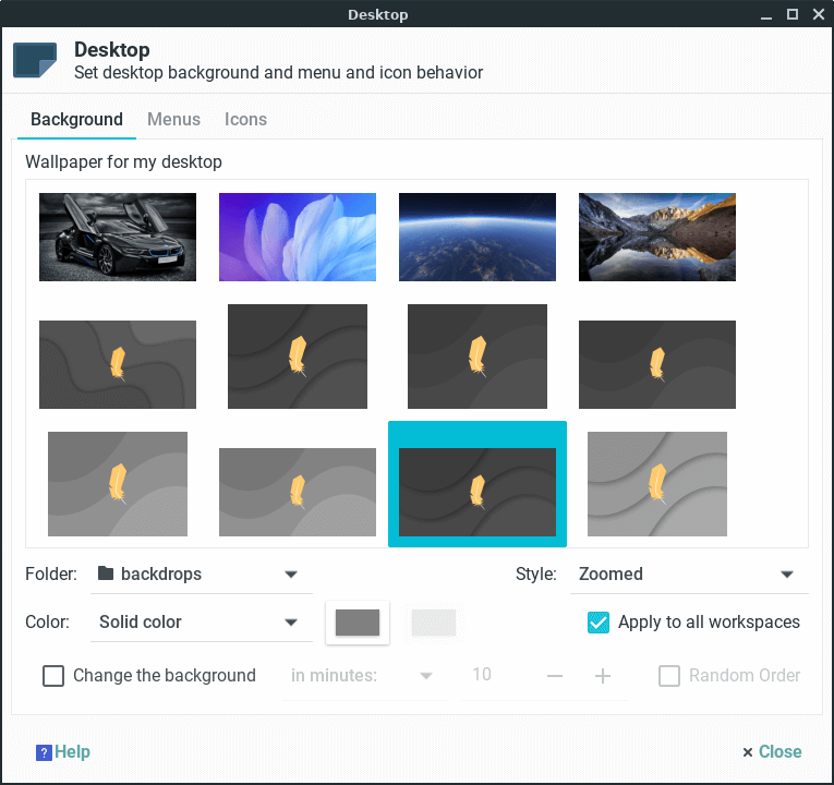In the window that appears, left click on any of the wallpapers to set a new Desktop wallpaper. More information on this can be found here.