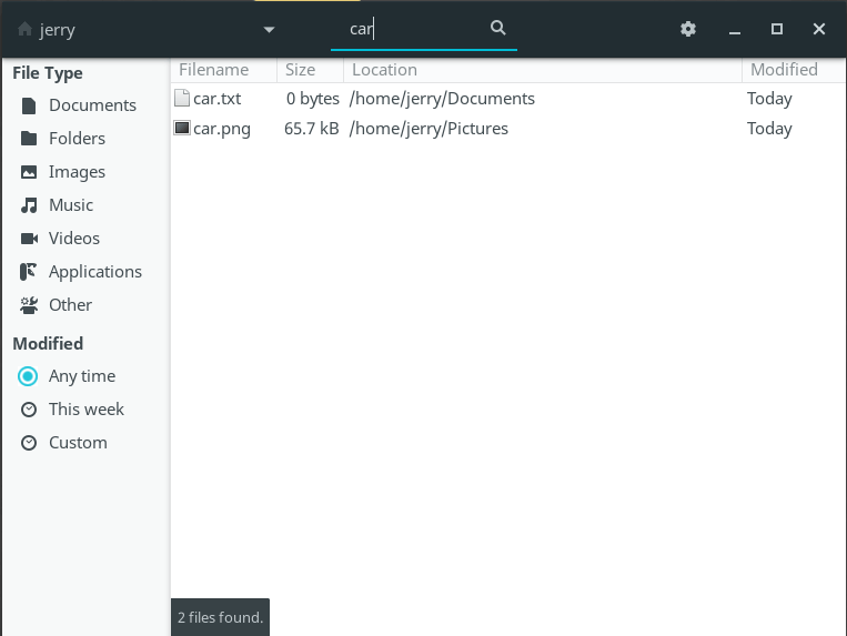Upon opening File search, you will see this file search window: Click the gear icon in upper-right corner and choose Refresh search index.