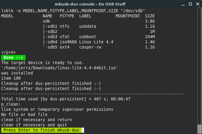 USB Persistence enables the user to have a USB device with Linux Lite installed onto it, that can then be rebooted and all the files and settings are still available.