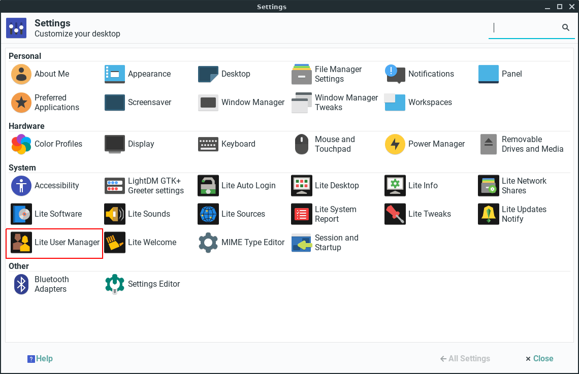 Close out Lite User Manager, the Settings Manager and any other open programs.